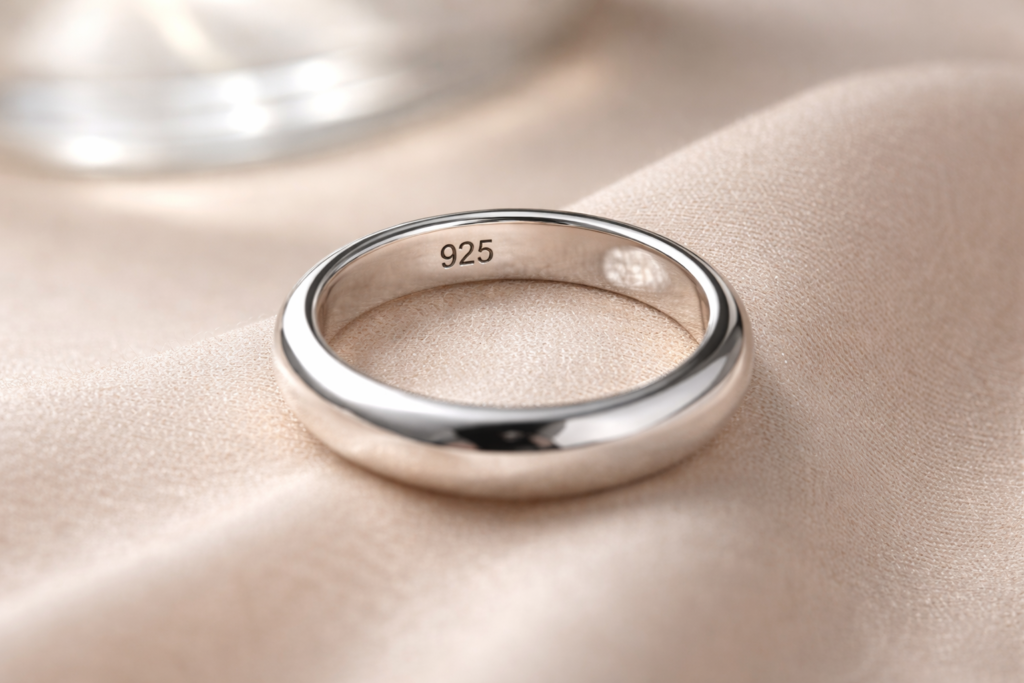 Para identificar si una joya es de plata 925, buscá el sello “925” o “92.5” grabado en el interior del aro o en el cierre. Esa pequeña marca es la forma más directa de validar la composición del metal.